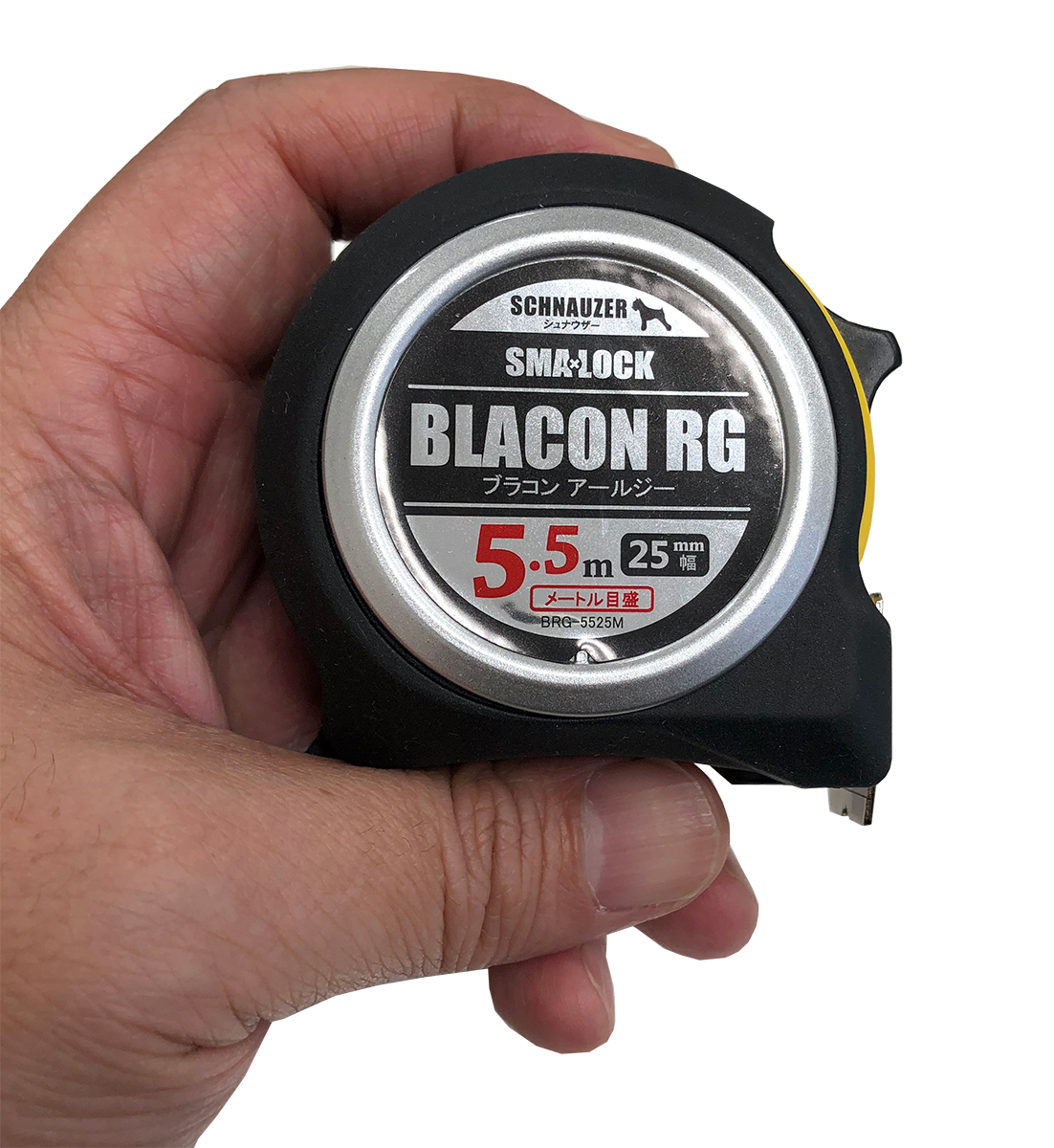 12個セット ロック付コンベックス BLACON RG(ブラコンアールジー)25mm×5.5m(メートル目盛) 黒黄カラー BRG-5525M-Y
